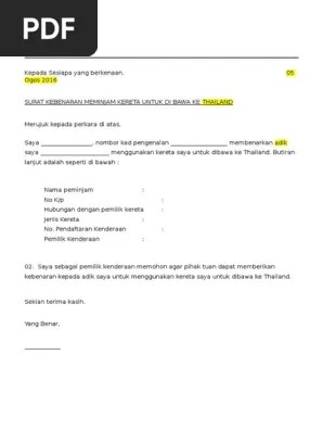 Contoh Surat Kebenaran Menggunakan Kenderaan - Seiring dengan perkembangannya, untuk sekarang ini surat sendiri memiliki banyak sekali jenisnya yang.