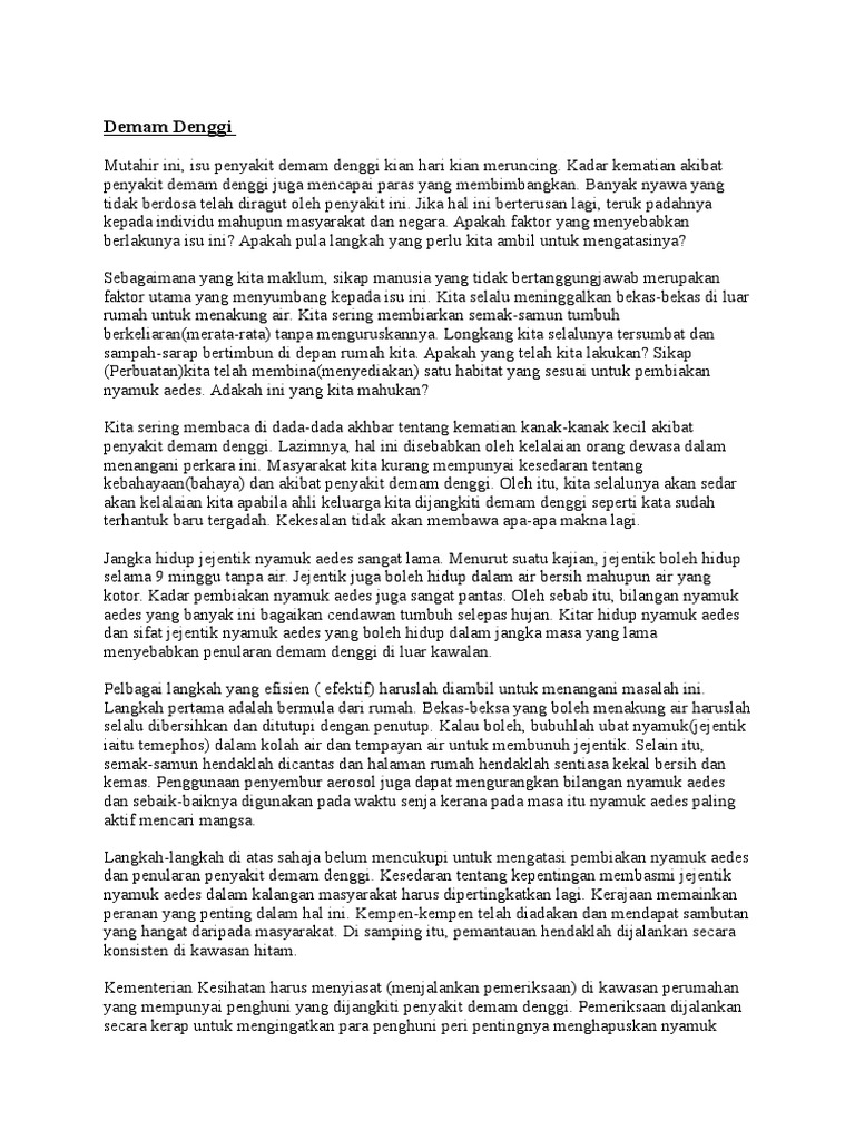 Lakukan 3m plus untuk pencegahan dbd demam berdarah dengue. Langkah cegah demam denggi tulis ulasan dengan isi tersurat dan isi tersirat yang lengkap dan gramatis. Pesakit akan menjadi teruk disebabkan oleh radangan di salur darah. Penerangan & fakta tentang demam denggi, 2. Himpunan ini telah dipetik dari pelbagai sumber dan kami telah menumpukan khusus kepada subjek bahasa melayu sahaja.